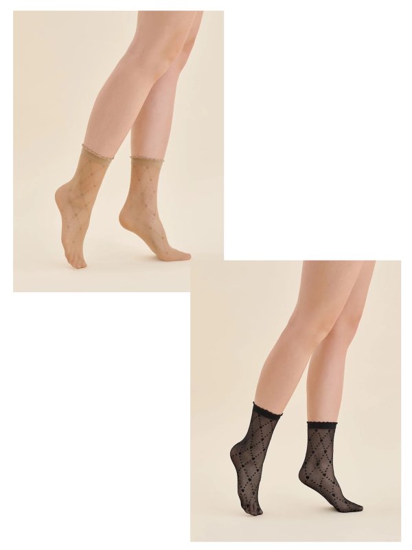 Gabriella SUNI nylonstrømper er unikke strømper, der kombinerer elegance med et strejf af legende mode. Strømperne er produceret af højkvalitetsgarn og har et subtilt mønster af prikker og hjerter, der skaber smukke diamantformer. En dekorativ, delikat sort manchet tilføjer et strejf af lethed. Manchetten strammer ikke, men sikrer at sokkerne bliver på plads hele dagen lang. Disse nylonstrømper kommer i et unikt mønster, der tiltrækker opmærksomhed og tilføjer karakter til ethvert outfit. Usynlige forstærkninger på tæerne øger strømpernes slidstyrke og holdbarhed.