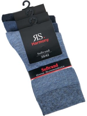 Harmony luksus strømper i klassiske jeans farver er lækre strømper i bomuld med soft-rib. Strømperne er helt klassiske og kommer med Soft-rib og er produceret i ekstra fin garn- og maskekvalitet. Denne Harmony strømpe i bomuld er behagelig og blød at have på. Kombinationen af Bomuld og polyester gør at disse strømper har en god slidstyrke og har en stabil pasform i hele deres levetid. Håndsyet tå-del. Ingen mærkbar syning. Tå-del og hæl er forstærket. Leveres som 3-PAK i klassiske jeans farver.