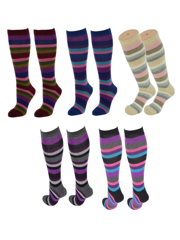 - Knæstrømper med flotte ringe i forskellige farver i hele strømpens længde