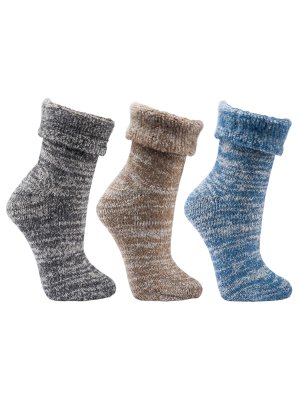 Lækre uldstrømper til dame og herrer med 63% uld. Denne model med uld er skøn varm og blød. Modellen kommer i 3 melangefarver med ombuk. Disse unisex uldstrømper er utrolig behagelige og bløde at have på, hvilket skyldes de er indvendigt børstet for at skabe ekstra blødhed og isolation. Nyd fordelene ved den temperaturregulerende naturfiberuld. Hygge og komfort er garanteret med disse uldsokker. Ideelle som hjemmesokker. Uldstrømper er perfekte til den koldere tid. Disse uldstrømper har ud over ombuk også komfort-rib, hvilket gør heldagsbrug til en fornøjelse.