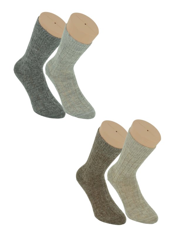 Lækre Uld/Alpaka uldsokker med 64% uld og 35% Alpakauld. Denne model med både uld og Alpakauld er skøn varm og blød. Modellen er ensfarvet med håndsyet tå-del. Disse uldsokker er meget behagelige og bløde at have på. Uldstrømper er perfekte til den koldere tid. Uldsokker i Uld/Alpakauld med komfort-rib. Leveres som 2-PAK i gråtoner eller naturtoner.