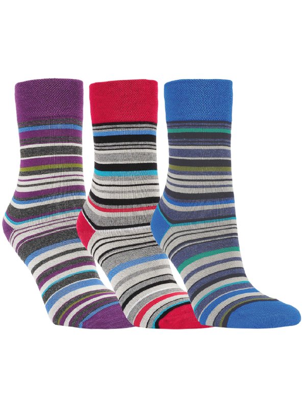 Bambus strømper fra Harmony er lækre bambus/viskose strømper med Soft-rib. Bambus strømperne er produceret med fine striber og ensfarvet rib, hæl og tå. Bambus strømper er udført med striber i mange farver. Det cool design gør at strømperne er nemme at matche efter vask sammen med andre strømper. Bambus strømperne føles super bløde og behagelige på foden. Bambus fjerner effektivt fugtigheden fra fødderne og gør strømpen åndbar. Altid tørre og varme fødder. Perfekt til aktive personer. Håndsyet tå-del. Ingen mærkbar syning. Tå-del og hæl er forstærket. Leveres som 3-PAK i Blå/Lilla/Rød