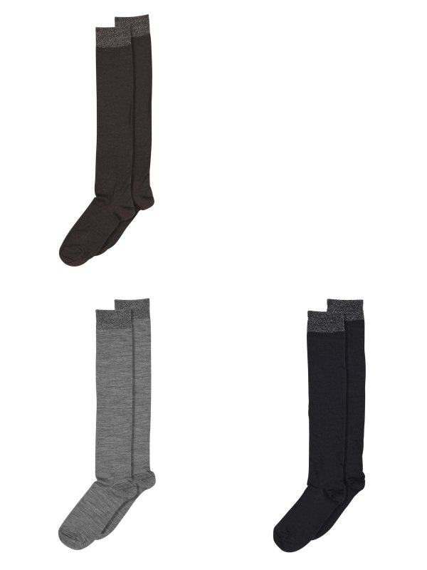 - Glatstrikkede knæstrømper med en behagelig ribkant med glimmer