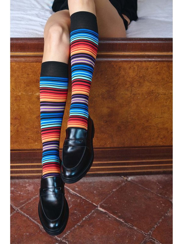 Trasparenze Rainbow Mikrofiber Knæstrømper med Striber i 80 den