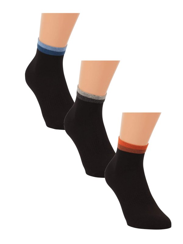Harmony 3-PAK Kortskaftede Strømper med Farvet Rib