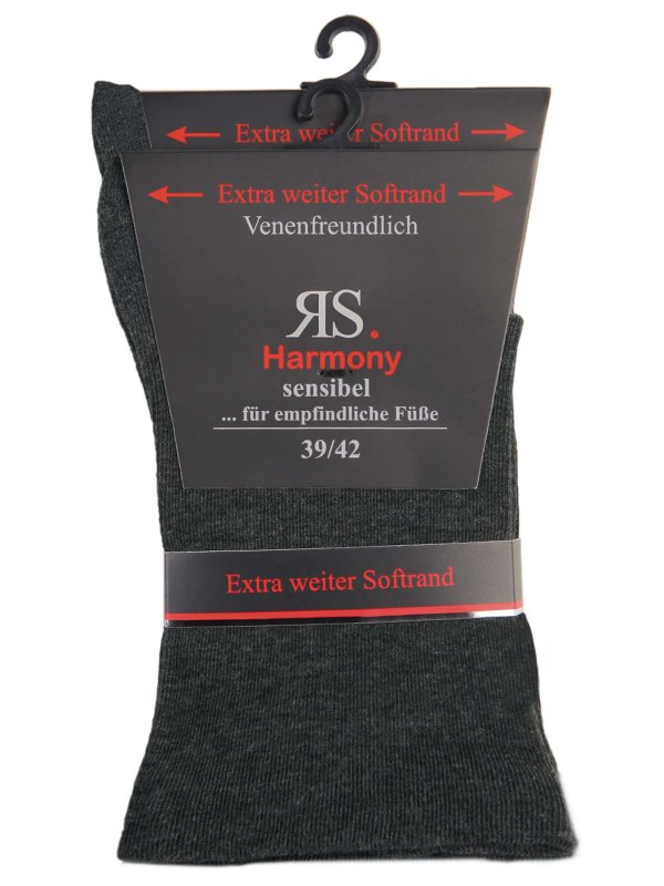 Harmony diabetes strømper med bred og blød Soft-rib. Strømperne er særligt egnet for diabetikere og personer med trykfølsomme fødder eller ankler. Strømperne er produceret uden snærende elastik, håndsyet tå-del og ingen mærkbare syninger. Tå-del og hæl er forstærket. Udført med ekstra fin maskekvalitet. Leveres som 2-PAK i Antracit.