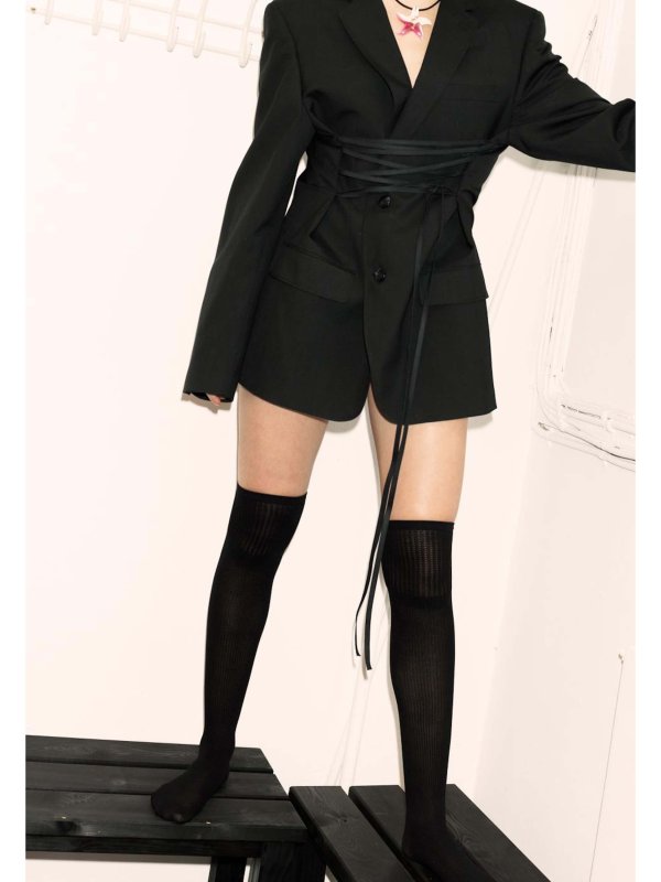 - Overknee strømper i klassisk sort, der giver stor fleksibilitet i forhold til valg af outfit.