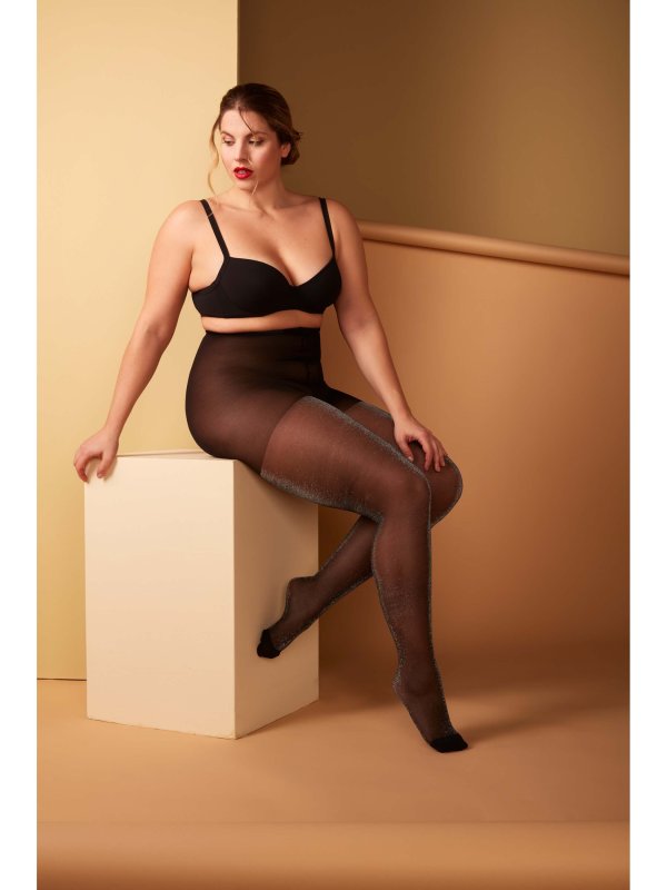 LegLove Curvy Strømpebukser i 30 den med Lurex Glimmer. Str. L -> 5XL