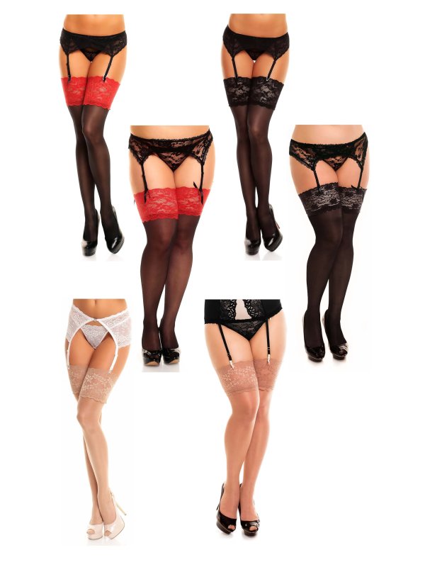 Glamory Plussize Stockings Luxury 20 den med Bred blonde i 3 farver. Str. M -> 4XL