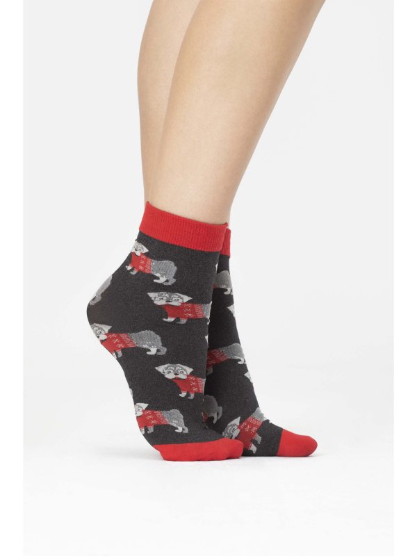 Med Xmas Buddy fra Fiore får du nylonstrømper med sort bund og søde hunde iklædt rødt. Disse julesokker bjæffer som de skal her op til den søde juletid. Ribben kommer i en levende rød farve og disse nylonstrømper / julestrømper vil med sikkerhed pifte dit outfit op i denne søde juletid. Pak dine fødder ind, så de matcher julepynt og sjov under juletræet!