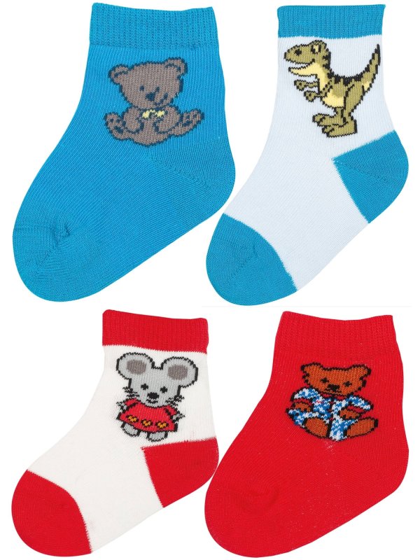 Lækre babysokker / babystrømper i bomuld med komfort-rib. Der er flade syninger på denne model. hvilket sikrer optimal komfort. Babysokkerne er prydet med glade dyr på anklen. Fås i 2-PAK.
