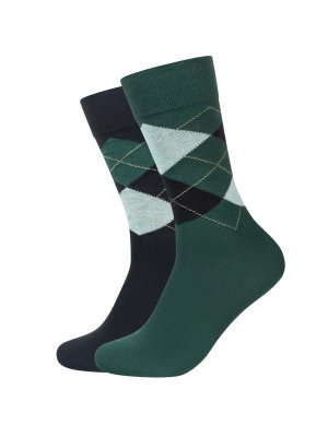 Camano Business Strømper med Klassiske Argyle Diamantmønster i Praktisk 2-PAK