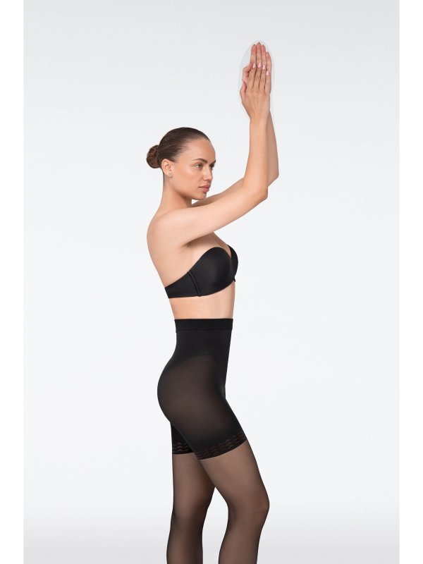 Lækre shapewear strømpebukser med shape funktion og en kraftig og komfortabel buksedel på 150 den. Strømpebukserne giver en god støtte omkring hofter, baller og mave. Udført med flade sømme for komfort og usynlig tåforstærkning for holdbarhed.I str. M, L og XL er der indsat en bomuldskile for optimal pasform, komfort og holdbarhed.