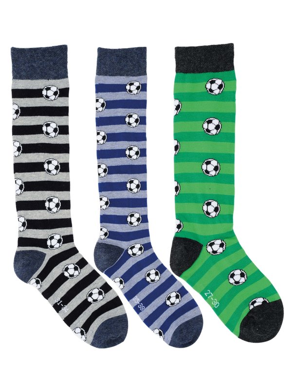 Børne Knæstrømper med fodbolde - Bomuld - 3-PAK