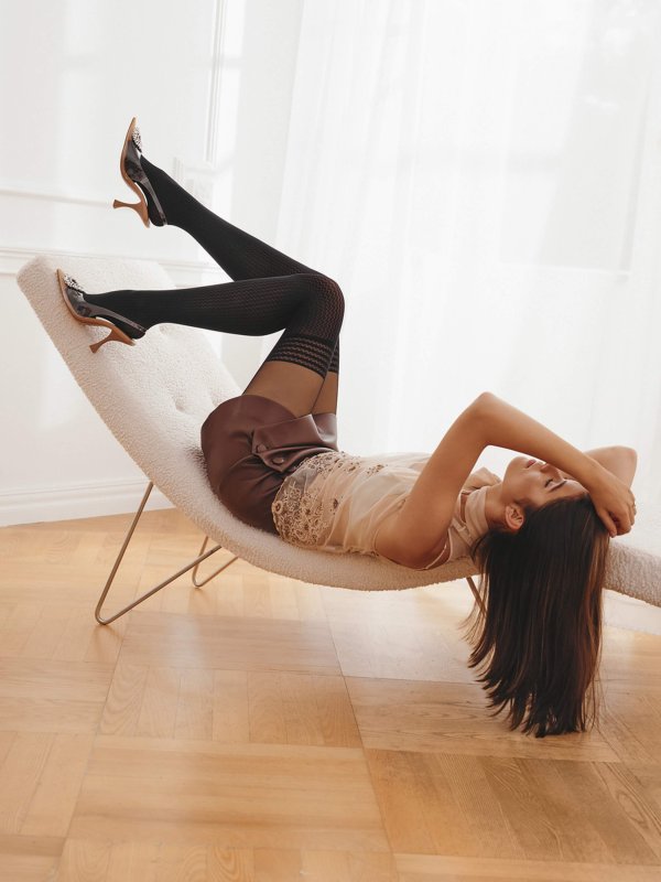 Strømpebukserne Pilar fra Gabriella er elegante mikrofiber mode strømpebukser med en kraftig underdel. Buksedelen er helt almindelig udformet (kan være misvisende på billedet da modellen har et højtaljerede trusser uden på strømpebukserne) Perfekte til en let gennemsigtig kjole. Denne fashion model har et optisk selvsiddende strømpe look og flotte bølge eller zig-zag linjer fra låret og ned. Du opnår herved det optiske selvsiddende look men med sikkerheden i et par strømpebukser. Omkring låret er ligeledes bølge eller zig-zag linjer der går hele vejen rundt. Modellen kommer i klassisk sort og bliver et hit for årstiden. Strømpebukserne har en mat finish, er udført med flade sømme for komfort og usynlig tåforstærkning for elegance.