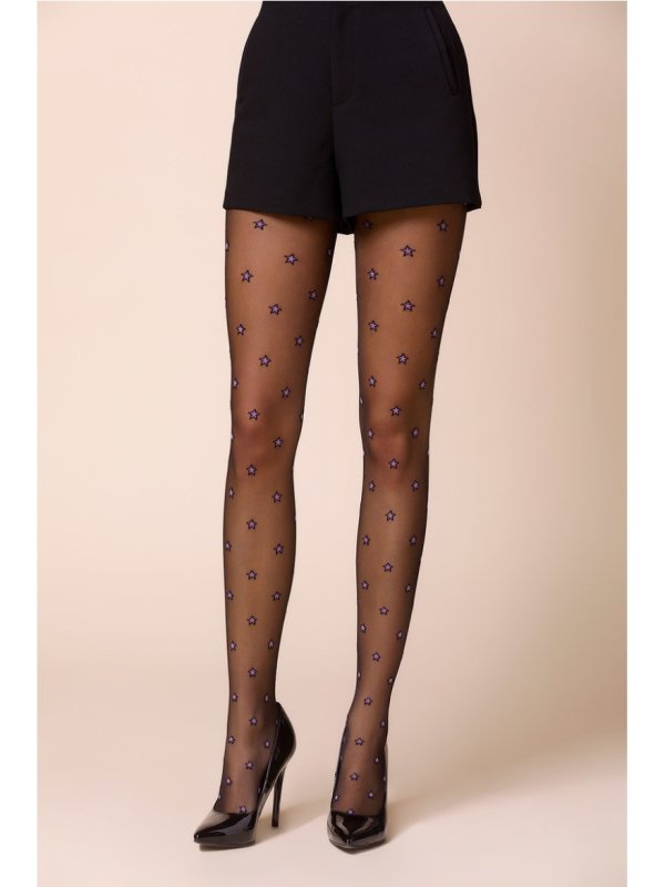 Elegante fashion strømpebukser med er flotte stjerner i forskellige farver. Du behøver ikke være rumnørd for at komme tæt på stjernerne. Perfekt til at fremhæve skiftet mellem årstider. Denne fashion model har stjerne symboler som gennemgående træk på hele strømpen. Modellen kommer i 3 kombinationer og bliver med garanti et stjernehit for årstiden. Strømpebukserne har en mat finish, er udført med flade sømme for komfort og usynlig tåforstærkning for elegance.